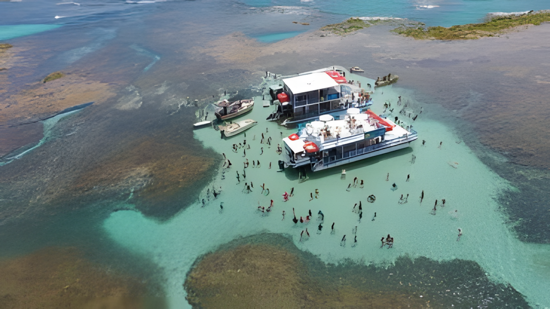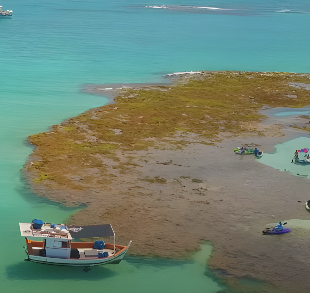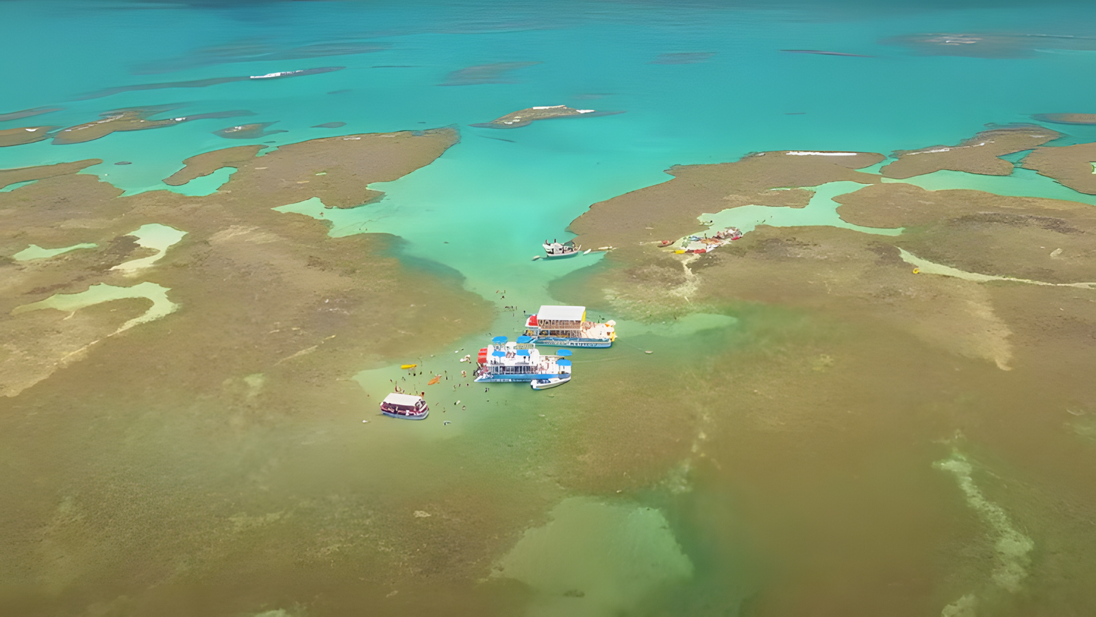 Pela manhã, a beleza surreal da Ilha de Areia Vermelha: um banco de areia com águas cristalinas e um cenário digno de filme.