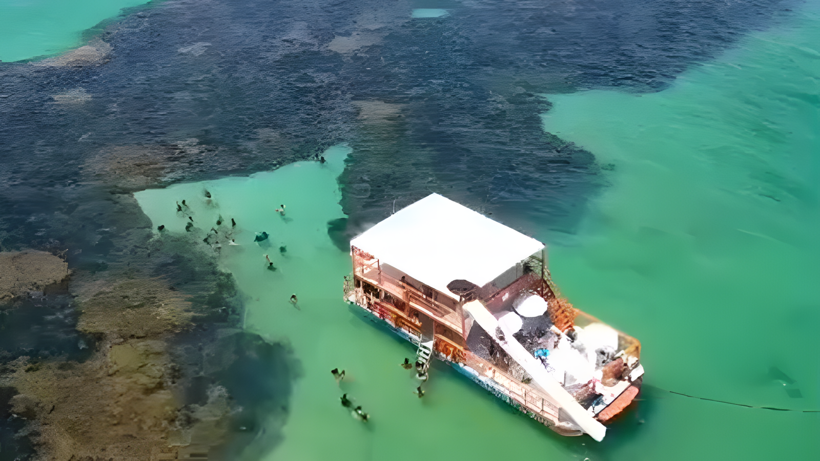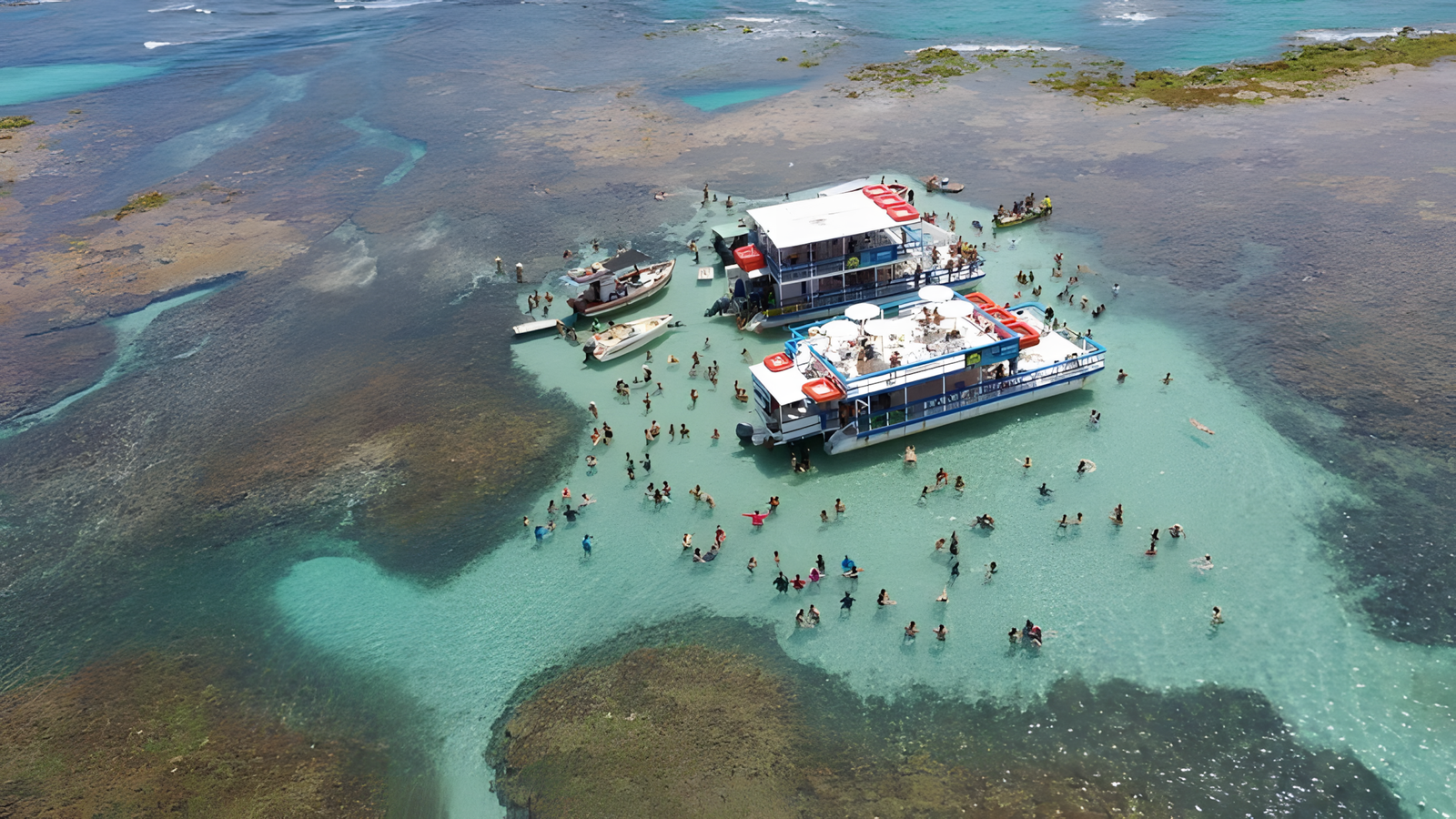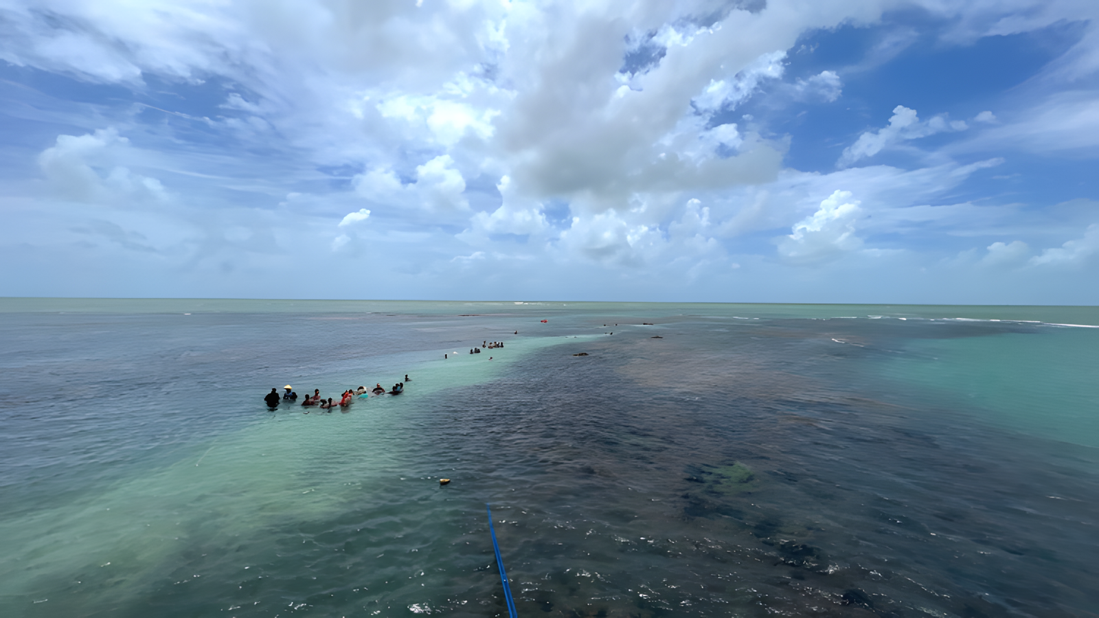 Pela manhã, a beleza surreal da Ilha de Areia Vermelha: um banco de areia com águas cristalinas e um cenário digno de filme.
