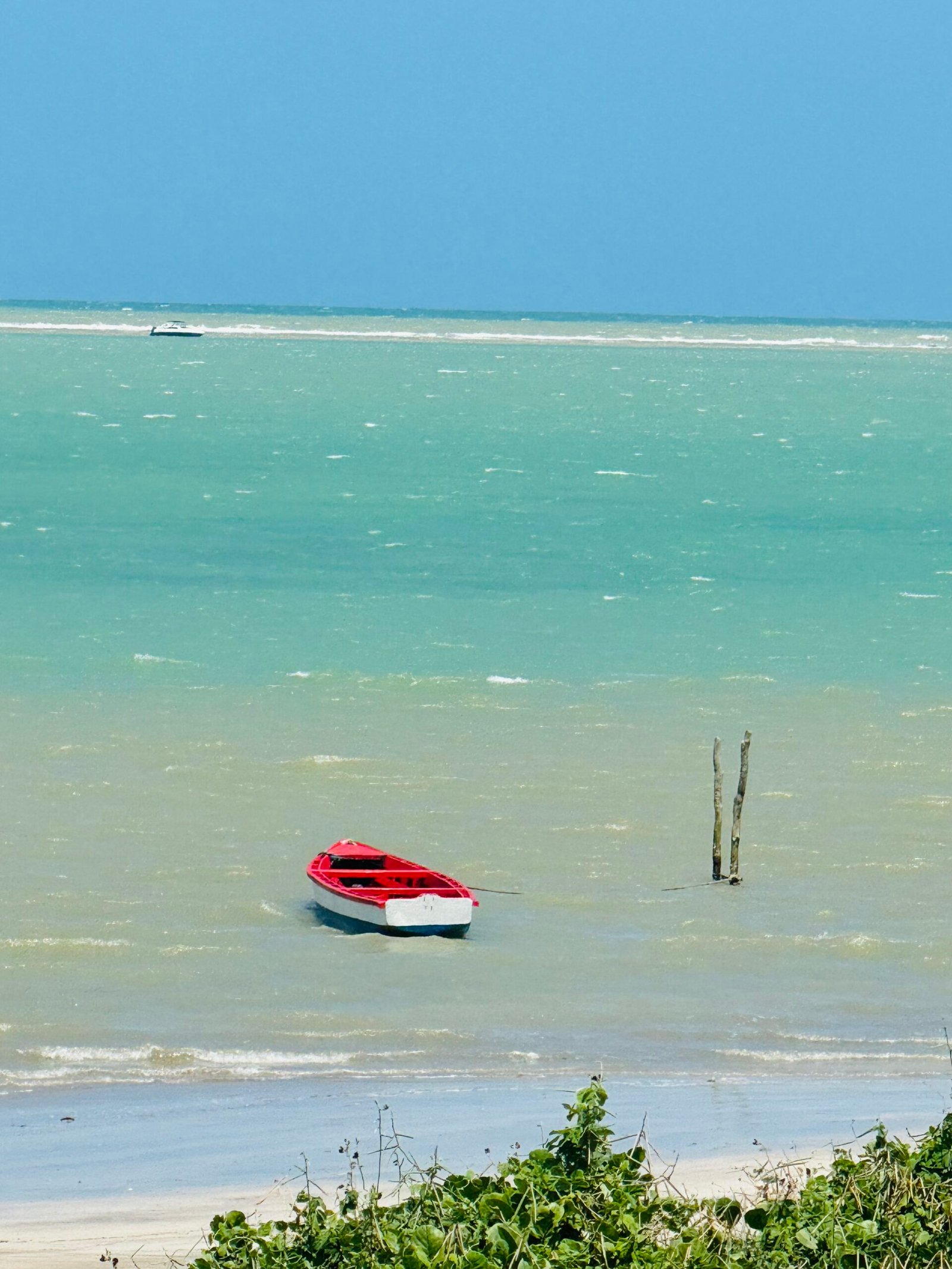 Pela manhã, a beleza surreal da Ilha de Areia Vermelha: um banco de areia com águas cristalinas e um cenário digno de filme.